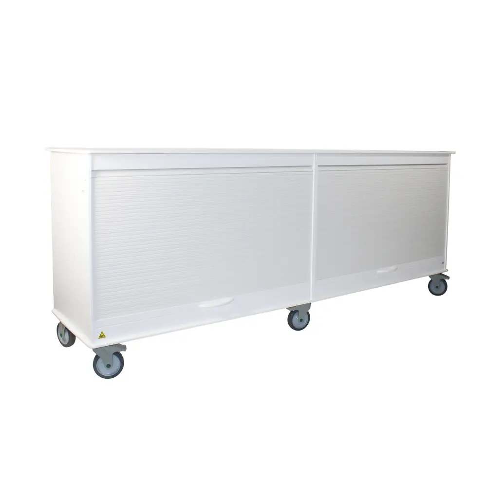 The MRI Lab Islands give technologists a safe, mobile workspace that keeps coils, linens, and consumables close at hand. With secure roll-top access, large MRI-safe casters, and durable non-metal construction, each unit helps you work faster without leaving the scan room. Whether you need a compact footprint or maximum staging space, the Lab Islands bring organization, flow, and confidence to every shift.
