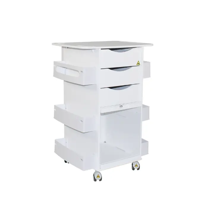 Slim, cleanable storage with soft-close, non-metal drawers that fits under counters and maximizes tight MRI spaces.