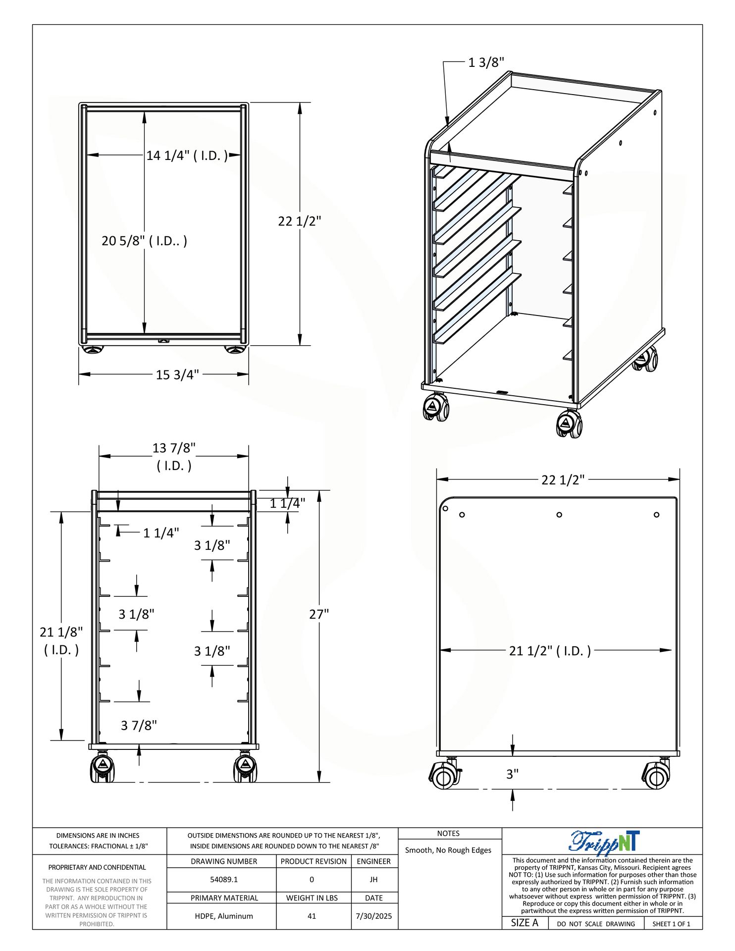 Organize supplies right under your hood with the LabFlow Hood Cart. Modular rails fit any LabFlow Tray, HDPE build resists chemicals, and lockable casters offer easy mobility. Keep supplies visible and accessible for peak lab efficiency.